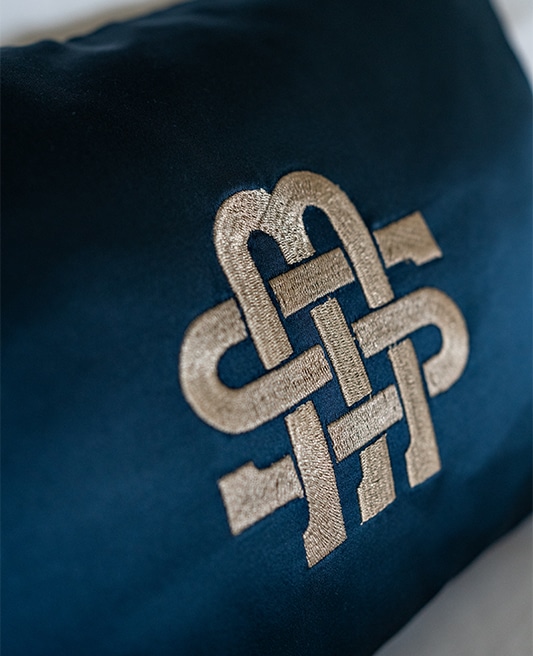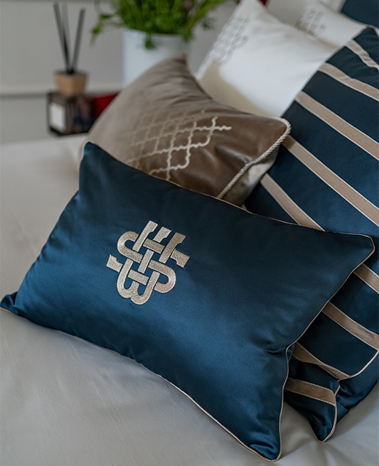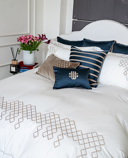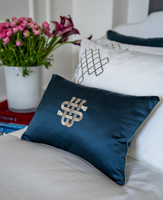 The focal point of the pillow is an artfully embroidered design that, at first glance, merges into a single, elegant motif. On closer examination, the embroidery reveals the initials “WS,” a nod to White Spring, the esteemed brand behind this collection. This intricate detail is not just a symbol; it’s a testament to White Spring’s commitment to quality and elegance.