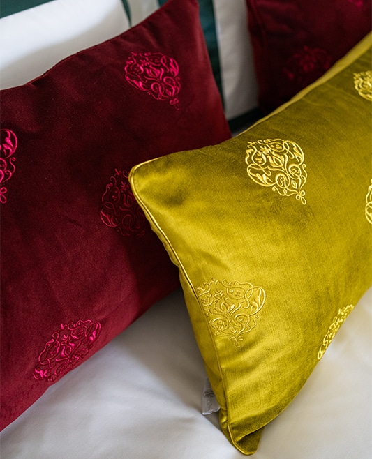 This burgundy velvet cushion refers to the house’s passion for elegant-inspired prints. This home accessory is crafted from luxurious velvet and trimmed with gentle burgundy braided. Position it on a bed to bring royalty to your bedroom.