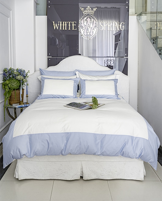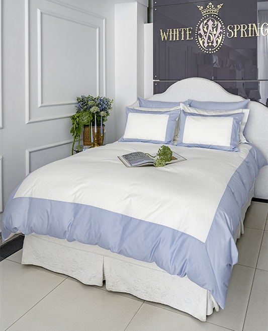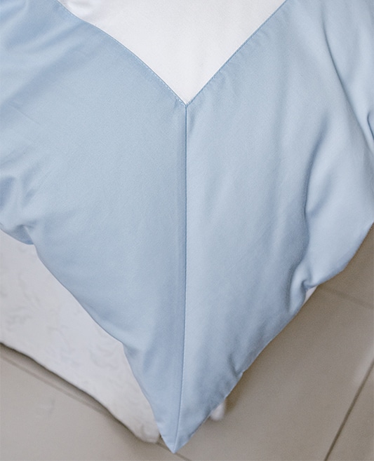 Transform your bed into a haven of relaxation with the “Azure Embrace” duvet cover. Its serene light blue border delicately frames the crisp white fabric, offering a refined yet soothing look. Made from premium-quality materials, this duvet cover provides a silky-smooth touch, adding an element of tranquility to your bedroom decor.