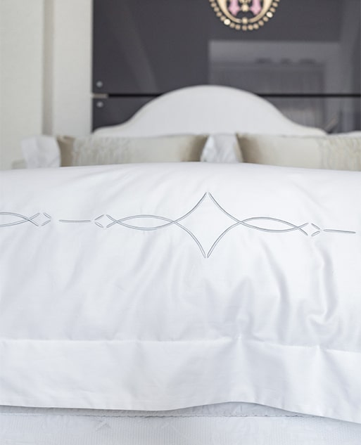 Sleek and sophisticated, the Geometric Embroidered Duvet Cover brings modern artistry and timeless calm into your bedroom.